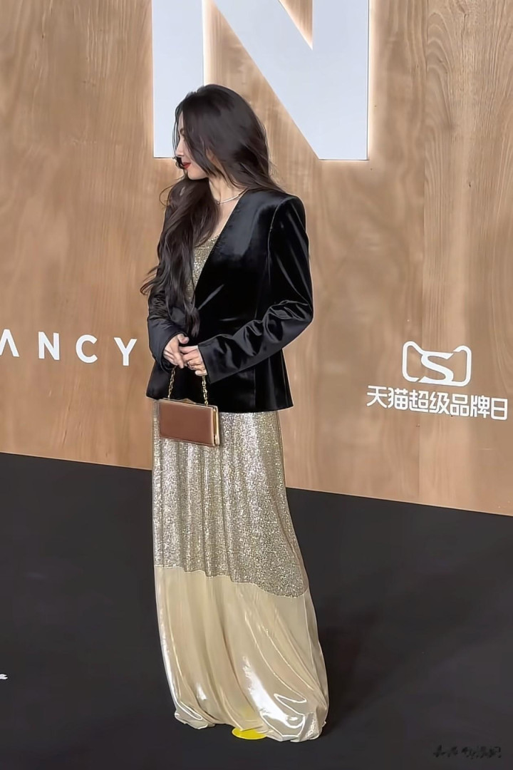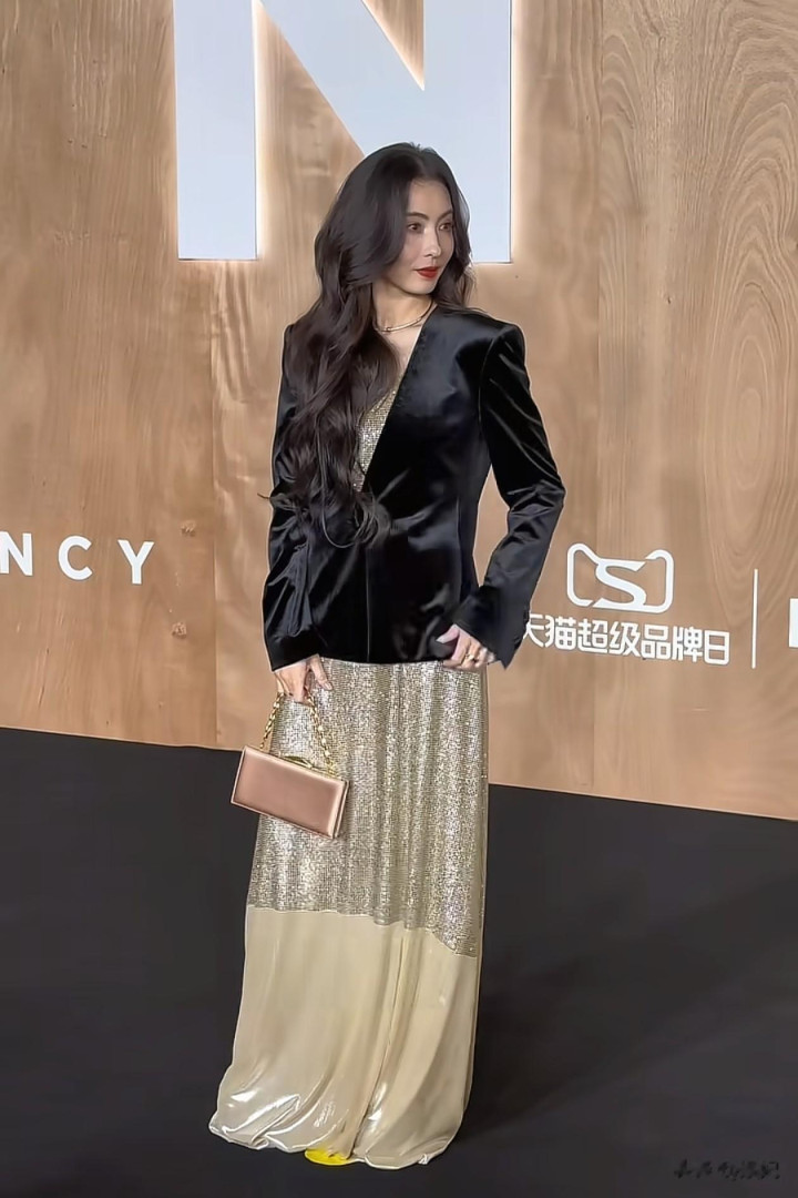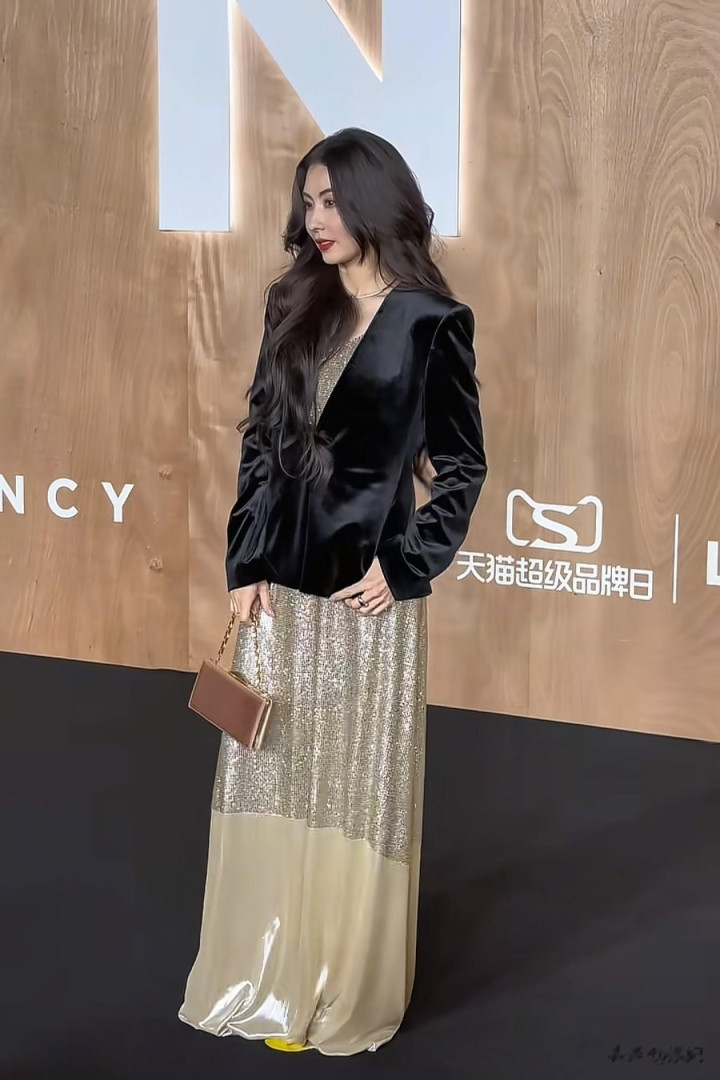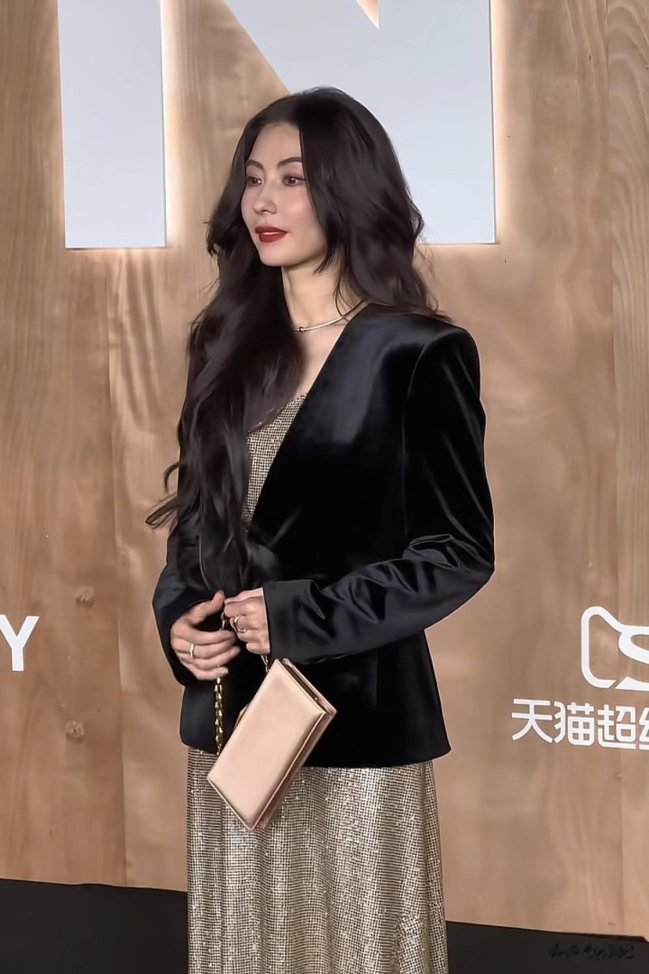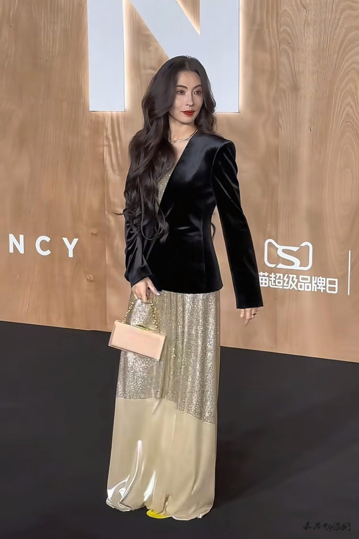 45岁张柏芝活动穿搭: 西装外套+连衣裙, 时髦又高级, 颜值太抗打